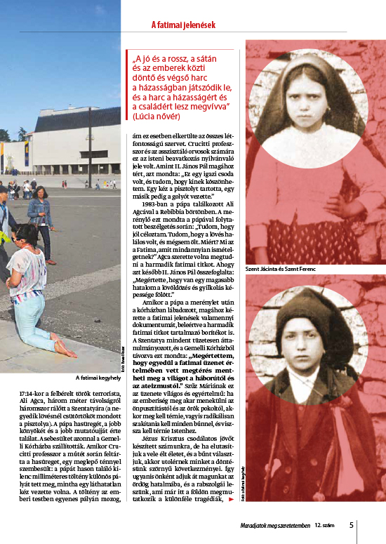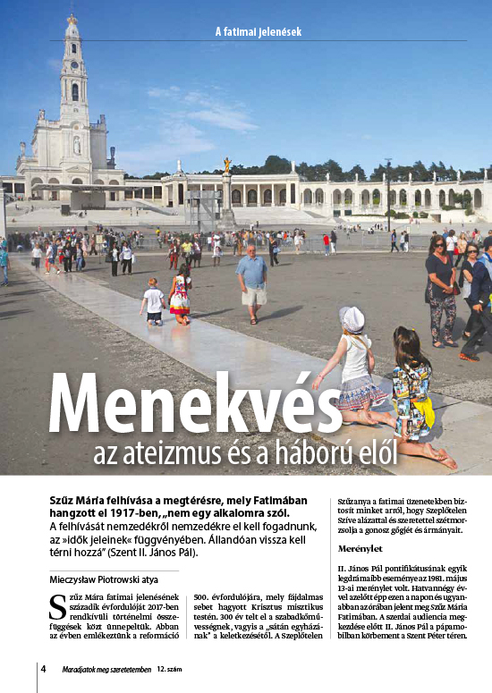 • Több mint száz év telt el az első fatimai jelenések óta. Mária azonban nem csak akkor szólított fel a megtérésre – a megtérés ma is feltétele annak, hogy megmeneküljünk az ateizmustól és a háborúktól.